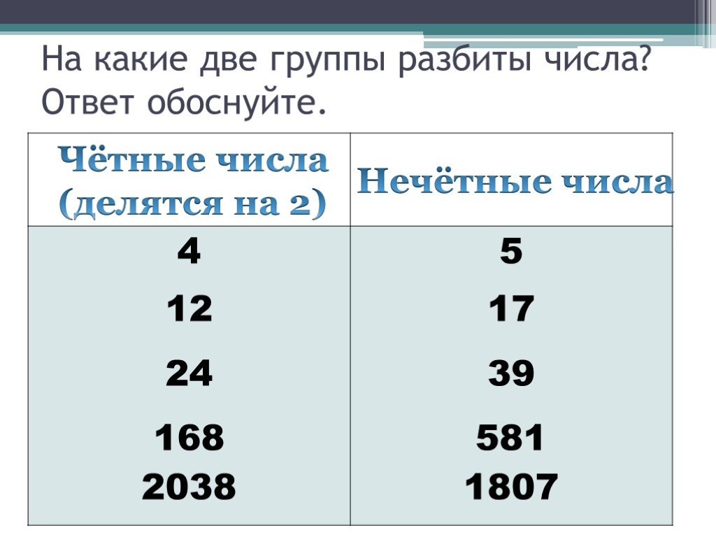 4 : 2 = 2 Это значит, что 4 — четное число.