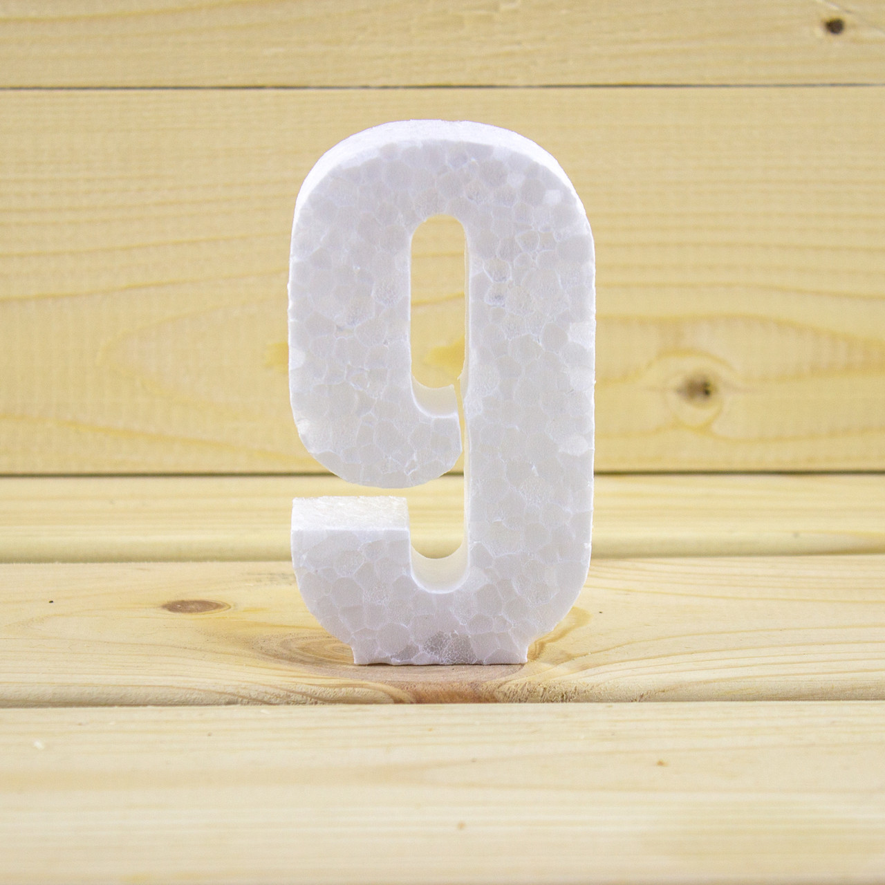 Девятку для уже взрослого именинника можно вырезать из пенопласта. Для этого возьмите кусок пенопласта и нарисуйте на нем девятку. Строительным ножом вырежьте цифру по контуру. Такую циферку можно оставить так, как есть, или же красиво задекорировать.