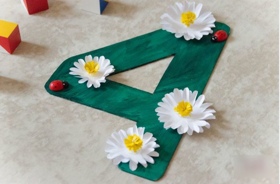Для декора делаем цветы (ромашки). На белом листе сделать круг и вырезать его. Чтобы получить красивый цветок, вырезанный кружок сложить на 4–6 частей и придать ему форму лепестка.