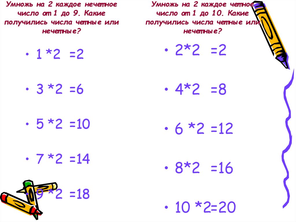 Ответы умножения на 2 находятся во втором столбце или во второй строке. Посчитайте двойками.
