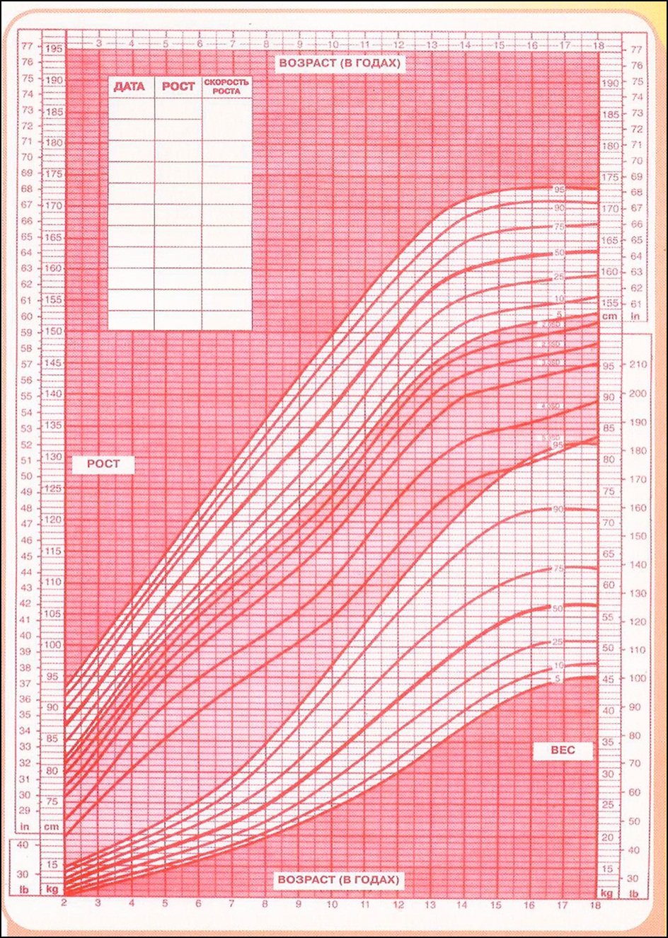 ПЕРЦЕНТИЛЬНАЯ ТАБЛИЦА РОСТА И ВЕСА ДЛЯ МАЛЬЧИКОВ