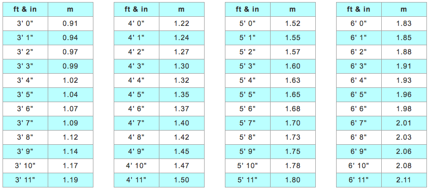 - Чтобы преобразовать высоту футов в метры , необходимо умножить ее на . Например, эквивалентно .