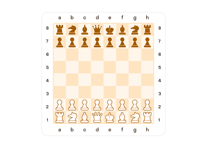 Перед всеми фигурами располагается ряд из восьми пешек: белые пешки занимают всю вторую горизонталь, а черные пешки — всю седьмую горизонталь. Чаще всего партия начинается с ходов центральных пешек, после чего открываются дорожки для слонов.