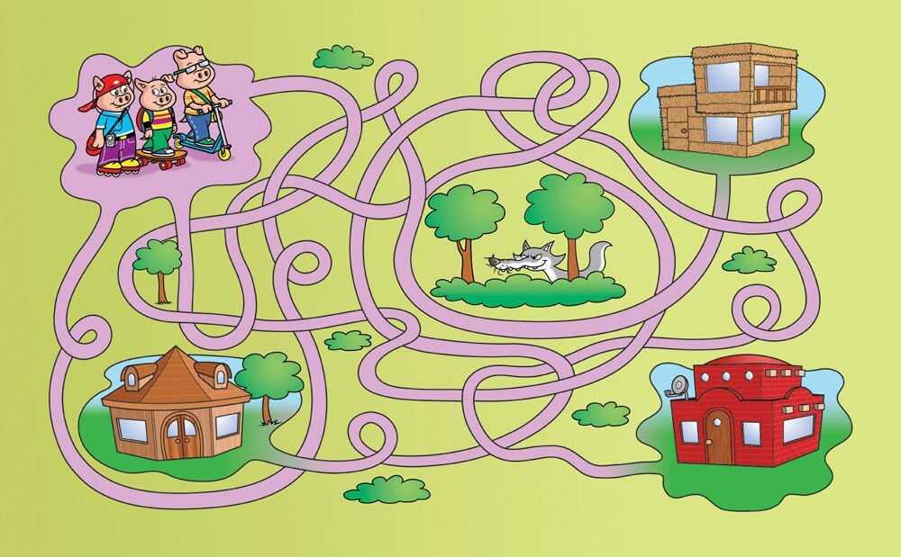 Эта игра представляет собой поиск выхода из определенной ситуации, в которую попадают различные герои. В самую разнообразную форму вписаны дорожки, где одна или несколько могут быть единственно правильными. Для деток младшего возраста это должны быть задания полегче, для более старших – сложнее и запутаннее.