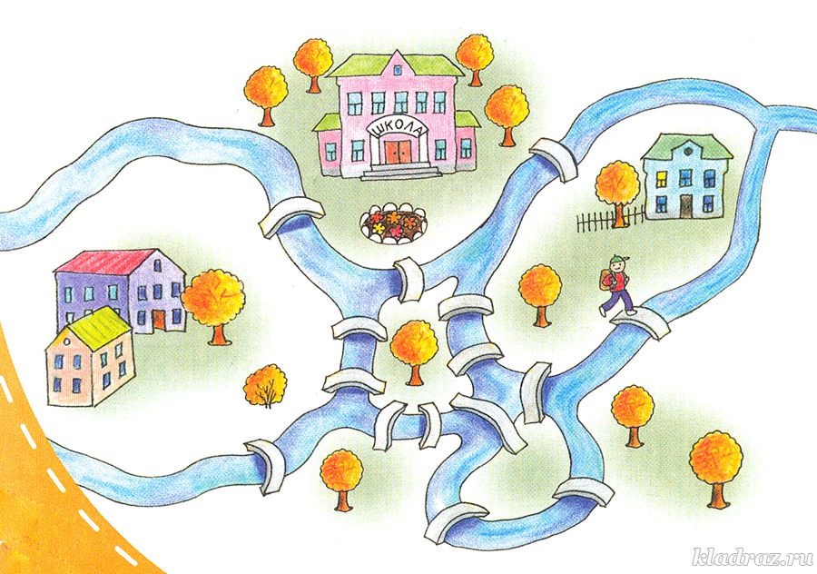 №15. Помоги мальчику дойти до школы, обойдя все мосты. По каждому из них можно пройти только один раз.
