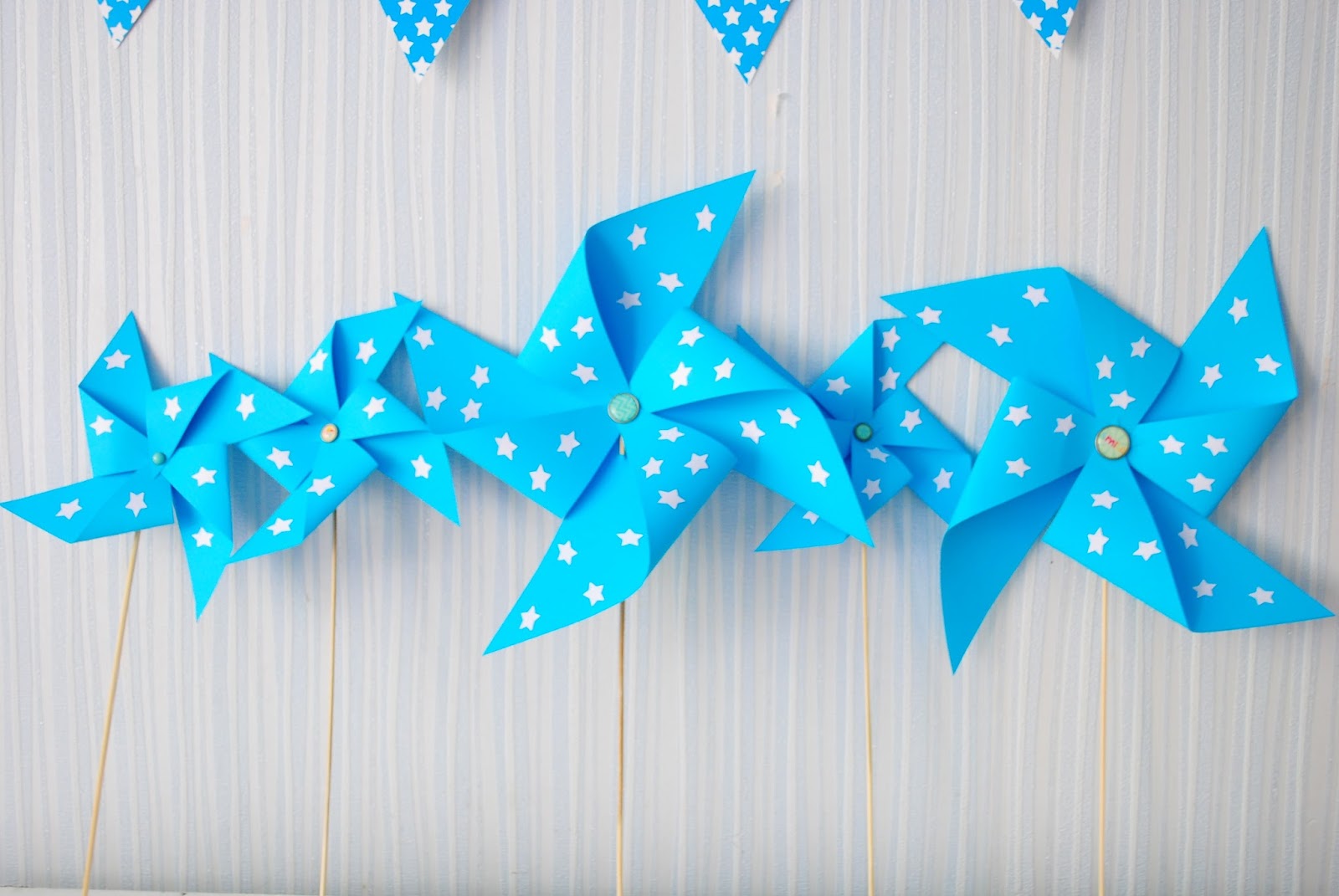 Очень стильно смотрятся голубые или розовенькие вертушки.