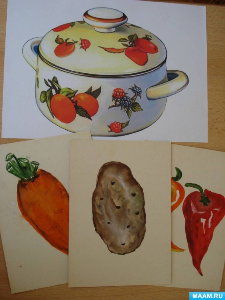 Вариант игры: вместо картинок можно взять муляжи овощей и фруктов.