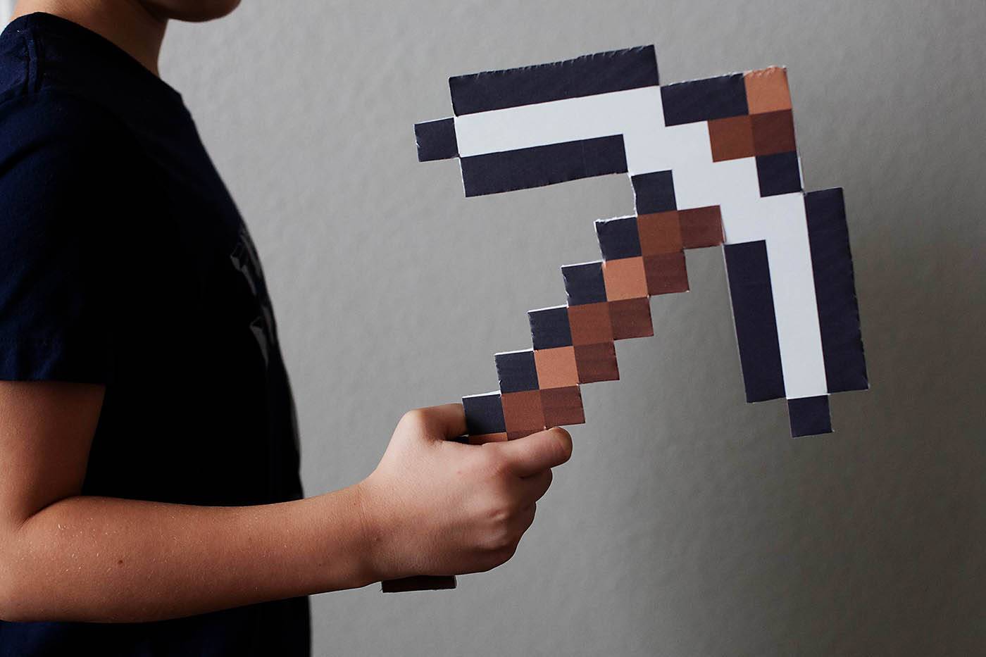 Кроме основных персонажей и популярных деталей можно изготовить многие сопутствующие детали игры: меч, кирку. Готовые шаблоны можно найти на просторах интернета, можно заказать готовые рисованные скины персонажей, после чего их остается только распечатать, вырезать и собрать. Сбор деталей напоминает метод работы с конструктором лего