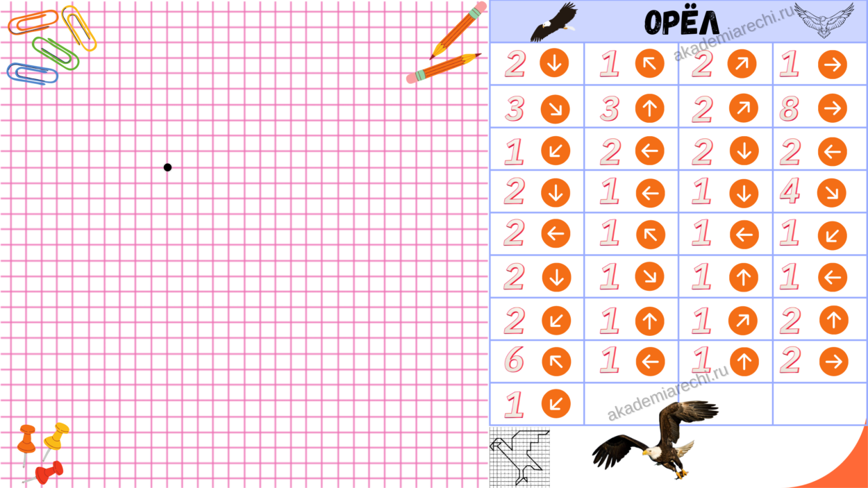 - Дать схему-модель рисования, где количество клеток обозначено цифрой, направление стрелкой.