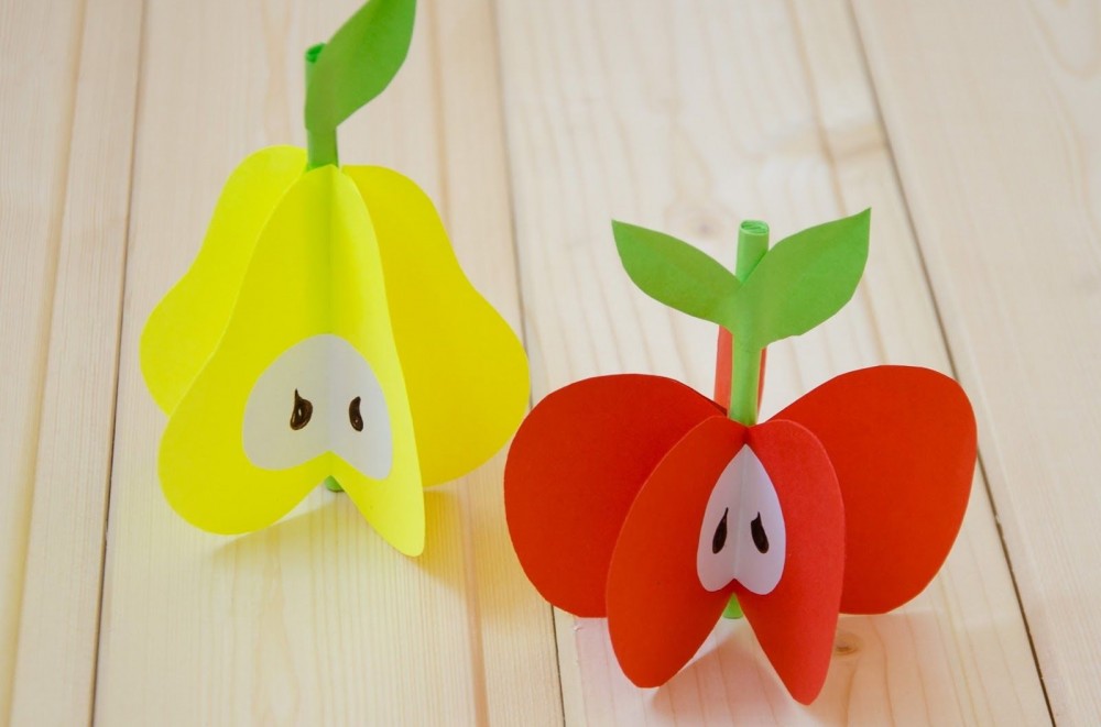 Для изготовления изделий могут использоваться всевозможные виды бумаги разной плотности и фактуры, но важным фактором для создания максимально реалистичного объекта является похожесть цвета на цвет настоящих фруктов. Ничего грандиозного по сложности в таком рукоделии нет, просто распечатать готовый чертеж, вырезать его, сложить и склеить по намеченным линиям.