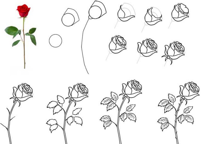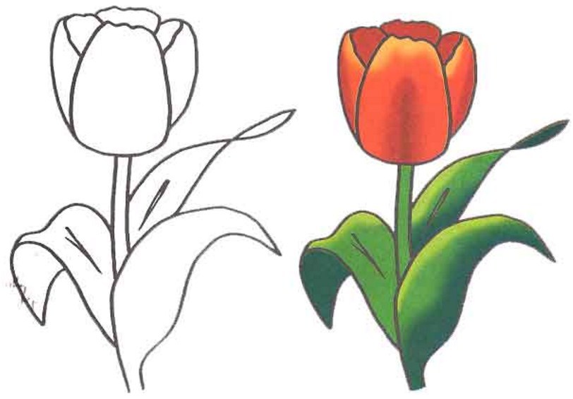 На большинстве схем как нарисовать цветы поэтапно карандашом вы можете видеть, что сначала рисуется контуры цветка карандашом, а затем цветок разукрашивается цветом.