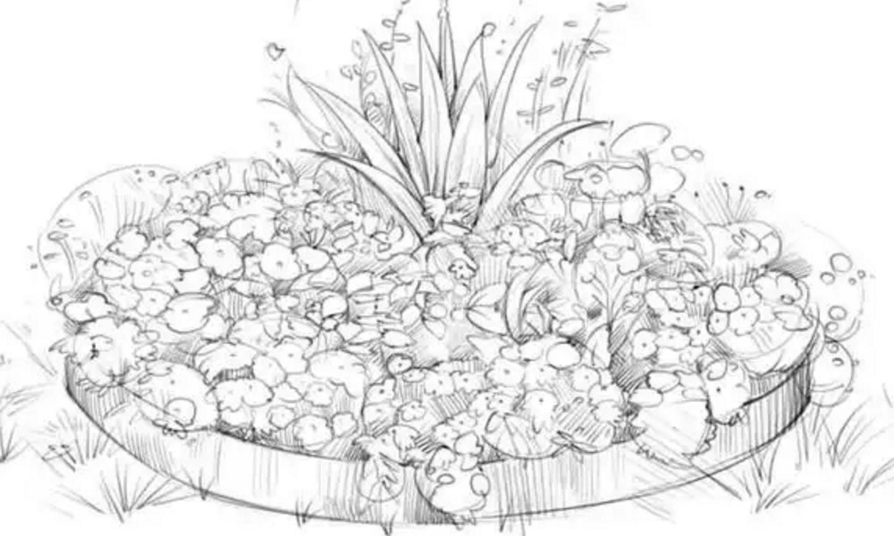 Цветочная клумба — рисунки карандашом для детей для срисовки: фото
