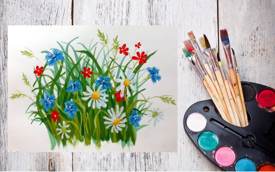 Если вы хотите нарисовать цветы красками, то тогда вам вместо цветных карандашей понадобятся краски. Можно разукрасить ваши любимые цветы и простым карандашом, но согласитесь, в цвете цветы будут смотреться гораздо красивее.