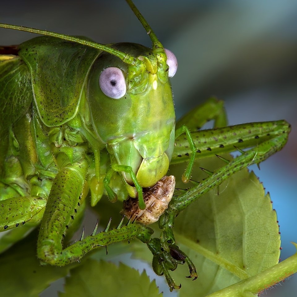 Есть виды кузнечиков с очень мощными челюстями, которые могут прокусить кожу человека и вцепиться в него мертвой хваткой, отцепить его можно лишь с помощью инструмента, например перочинного ножа, разжав ему челюсти.