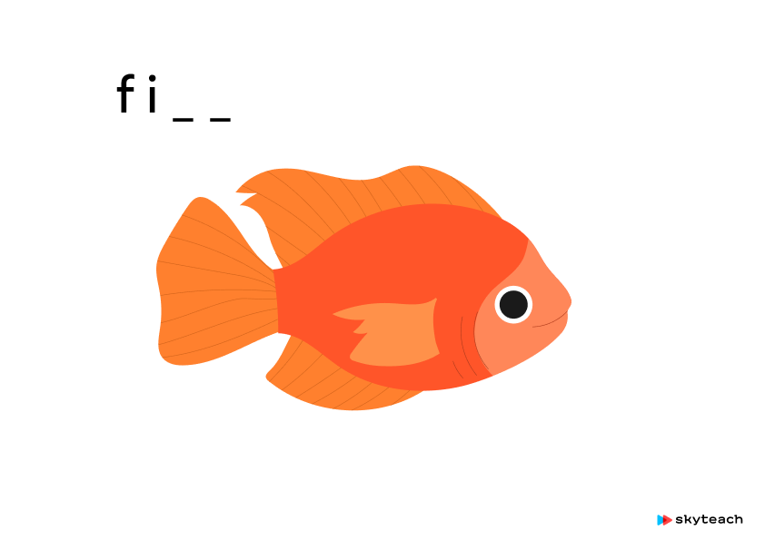 2) Учим сочетания с буквой -h-: -sh- (fish), -ch- (chips), -th- (three/this).