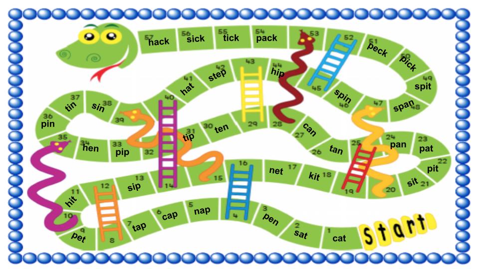 Когда их проработаете, сделайте паузу, поиграйте в игру-бродилку “Snakes and Ladders” на повторение всех уже пройденных звуков. Кидаете кубик и ходите, называя по дороге все слова. Если остановились на лестнице, поднимаетесь по ней вверх, если встали на голову змеи, опускаетесь вниз.