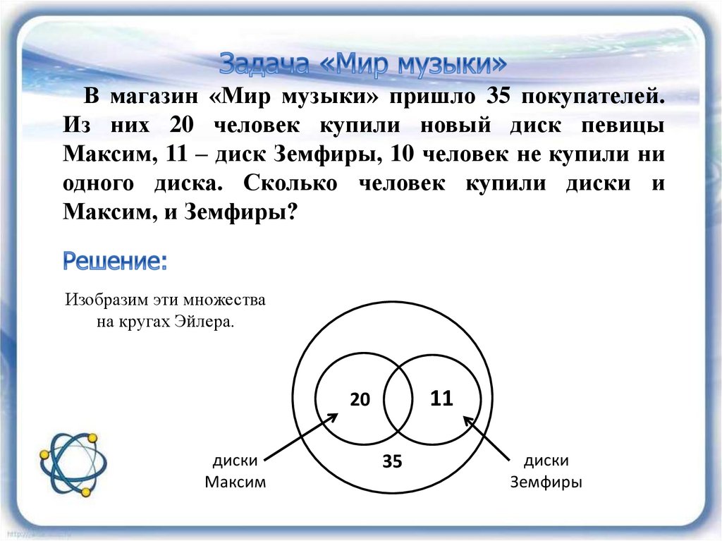 Пример решения задачи с помощью кругов Эйлера