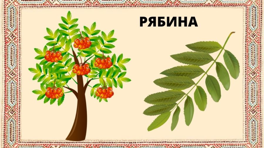 Рябина. Мне нравится, что в книге ребенок видит и листья, и плоды, и цветы, и само дерево. Правда, Леше в голову пришло осенью искать на деревьях цветы)