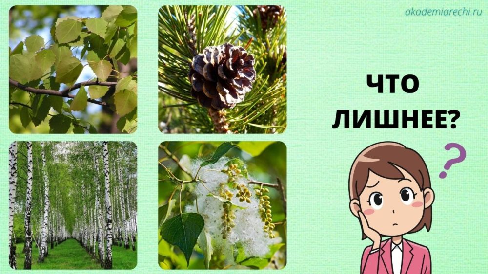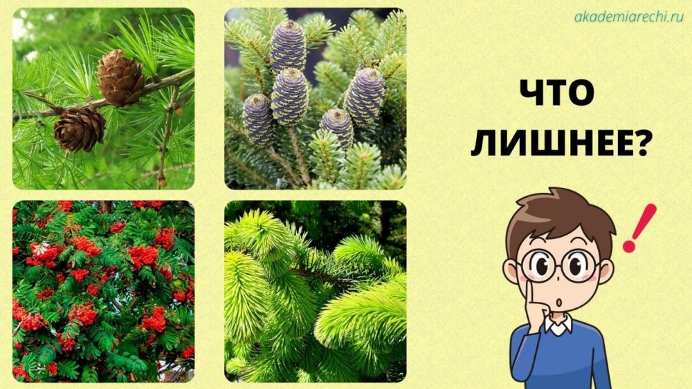 Отличная игра для закрепления знаний — «Найди лишнее». Взрослый раскладывает по 4 изображения, а ребенок пытается угадать лишнее растение. Например: