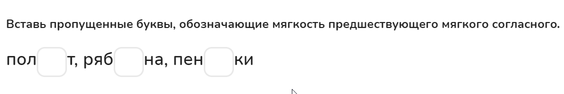 Вот так выглядят на платформе задания на закрепление темы «Мягкий знак»: