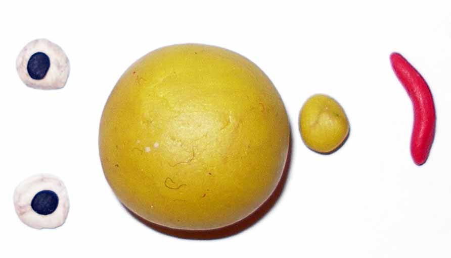- Скатайте плоский овал из белого пластилина и прикрепите его к нижней части головы.