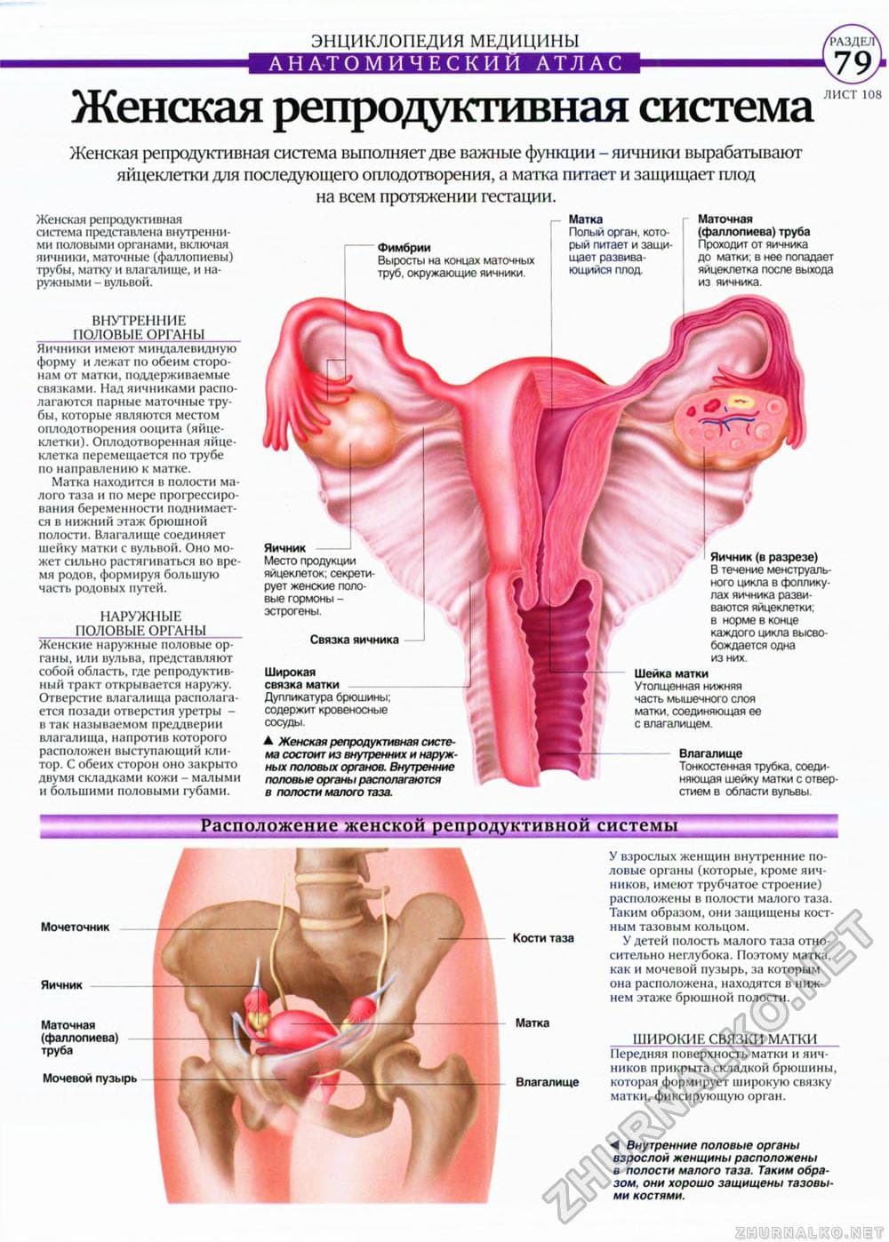 На десерт мы приберегли женскую репродуктивную систему. Картинка взята с Журналко.нэт. На ней подробно рассказывается про женские половые органы.