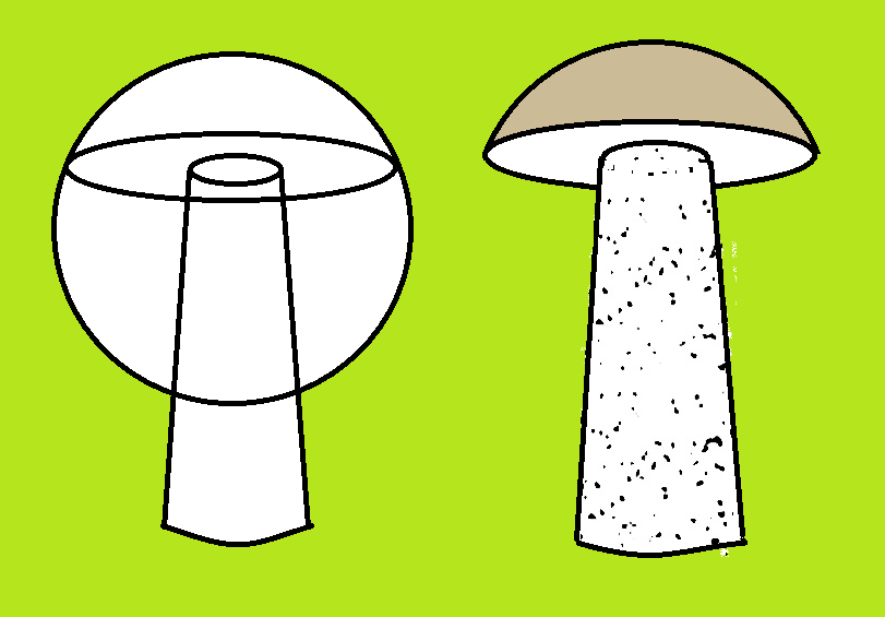 Рисовать белый гриб проще, чем другие грибы потому, что он имеет правильную геометрическую форму.