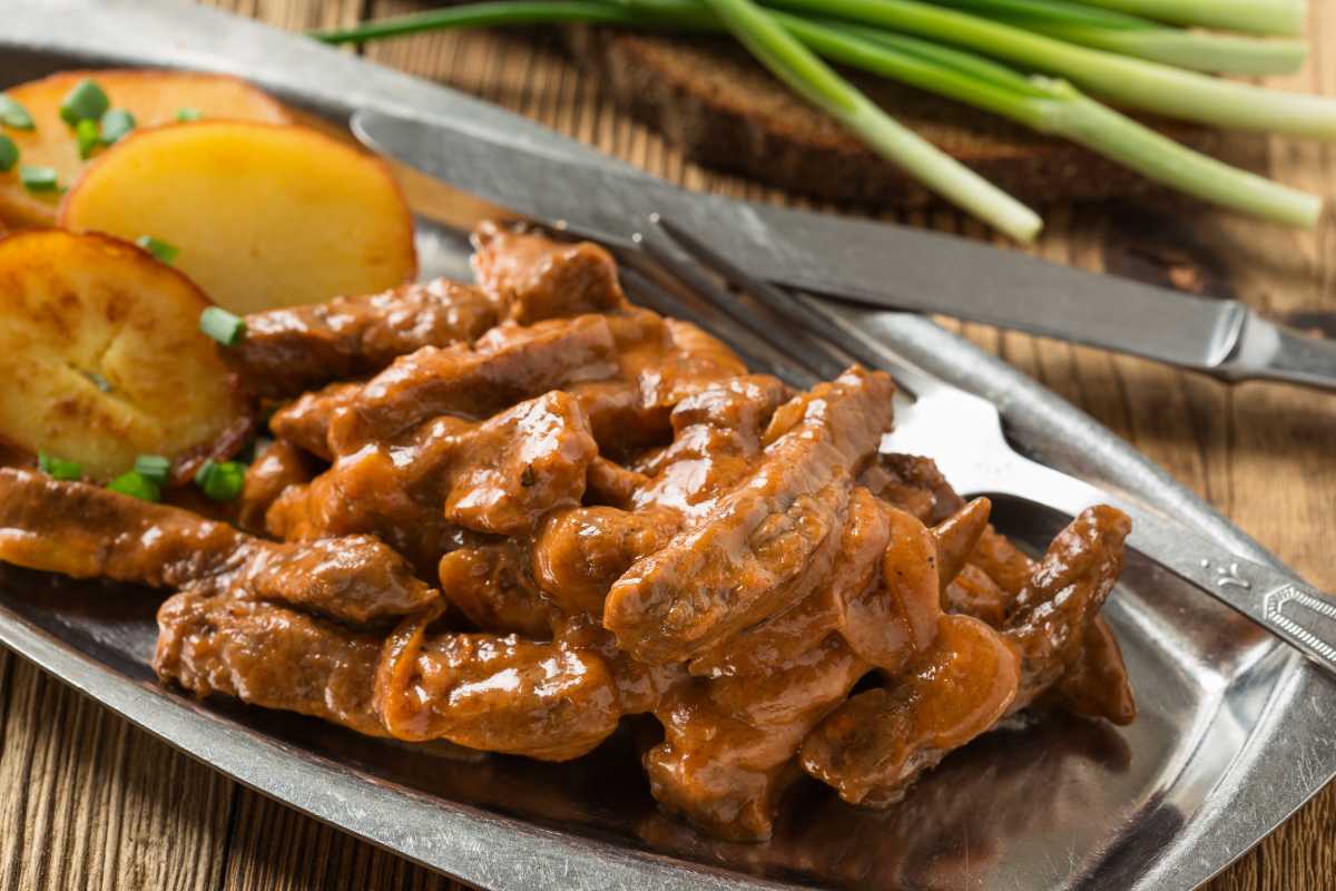 БЕФСТРОГАНОВ (от фр.Bœuf Stroganoff — «говядина по-строгановски»; также встречаются варианты «Беф а-ля Строганов» и «мясо по-строгановски») — популярное во всём мире блюдо русской кухни, которое готовится из мелко нарезанных кусочков говядины с соусом. Получило название в честь графа Александра Григорьевича Строганова.