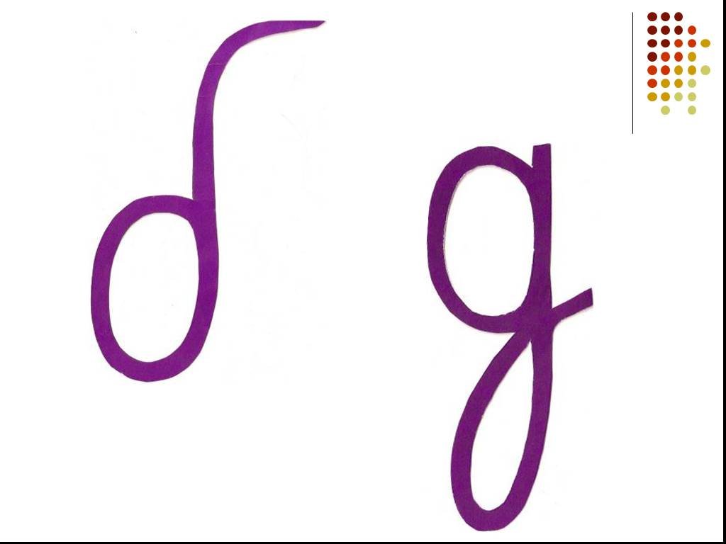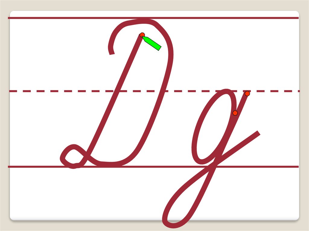 — Безотрывно пишем длинную прямую линию с петлёй и правый полуовал. Писать его надо сверху вниз, начало буквы — немного ниже середины широкой строки, пересечение петли с прямой линией делаем на верхней линейке рабочей строки; линия петли плавно переходит в правый полуовал; «шапочку» пишем с отрывом: на середине расстояния между строками пишем закругление и затем прямую линию.