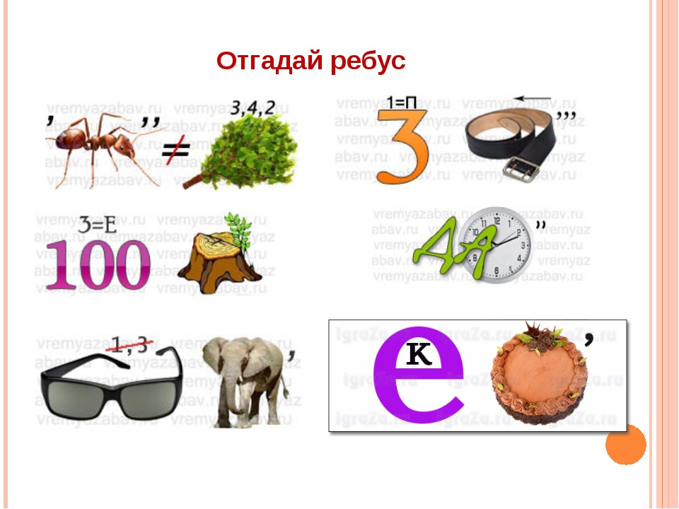 Картинки можно заменять цифрами. Например, буква О и цифра 5, получаем слово опять. 100 и Л, получаем стол.