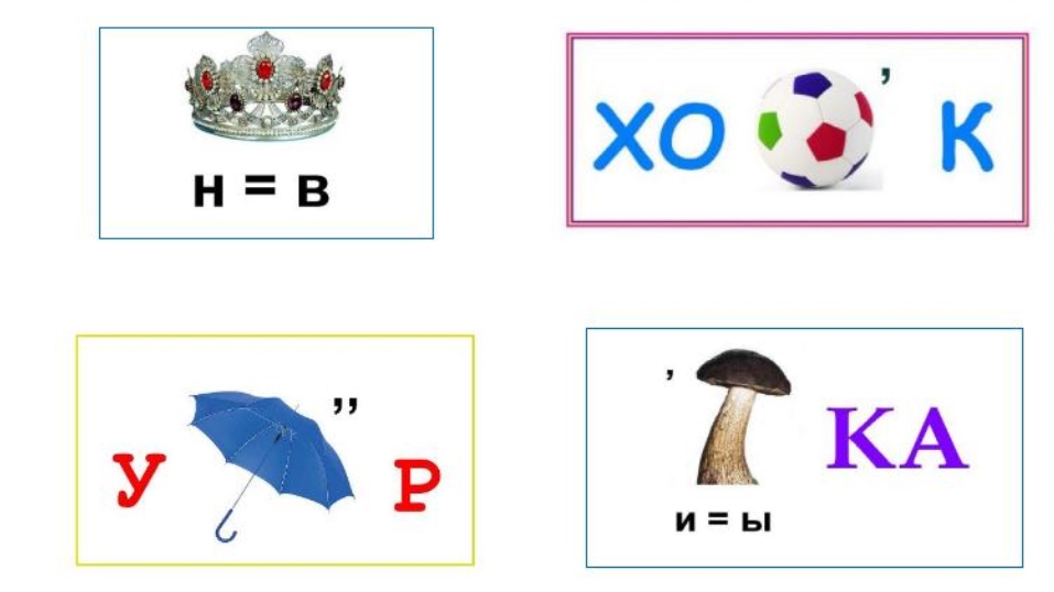 Если нарисован предмет, а около него написана, а потом зачеркнута буква, то это значит, что букву эту надо выбросить из полученного слова. Если же над зачеркнутой буквой стоит другая, то это значит, что нужно ею заменить зачеркнутую. Иногда в этом случае между буквами ставится знак равенства