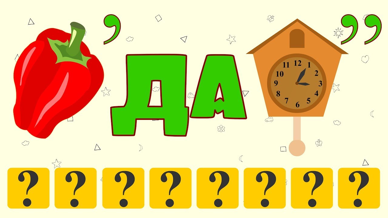 Например: «в-о-да», или «не-в-а, или «в-о-семь»: