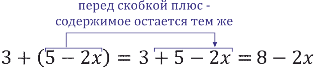 Если перед скобкой стоит знак плюс, то скобка просто снимается, выражение в ней при этом остается неизменным. Иначе говоря: