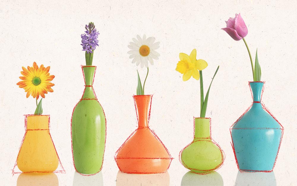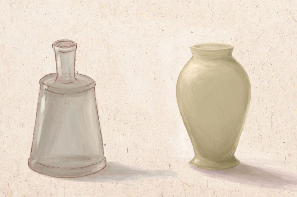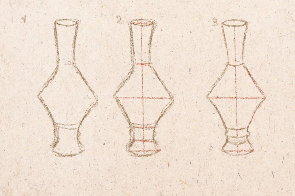 Если вам пока сложно работать с натурой, попробуйте сначала создать несколько набросков поэтапно по уроку, чтобы лучше понять и запомнить основные принципы. Вот пример двух сосудов: