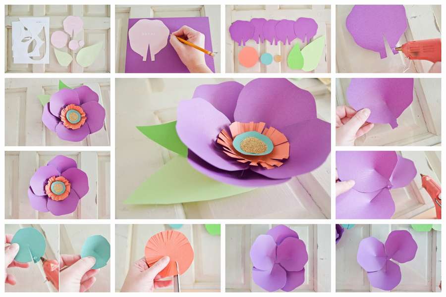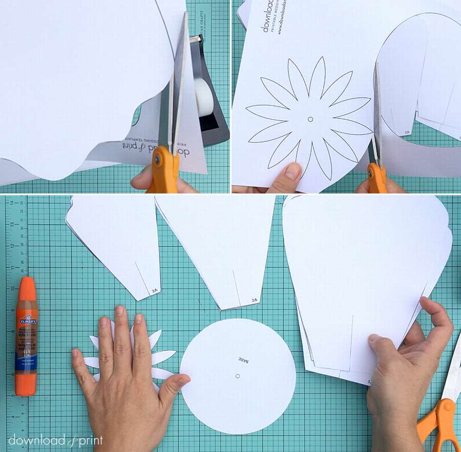 Чтобы сделать этот красивый цветок, вам понадобятся трафареты цветов и листьев, цветная бумага, ножницы, пистолет для горячего клея. Распечатайте трафареты и вырежьте фигуры. Обведите шаблоны на цветной бумаге и вырежьте. Когда делаете цветы из бумаги вырезанные вручную из шаблона, поэкспериментируйте с изменением формы лепестков и листьев, чтобы создать разнообразные узоры. Масштабируйте их больше или меньше, чтобы получить другой вид. Самое главное, получайте удовольствие!