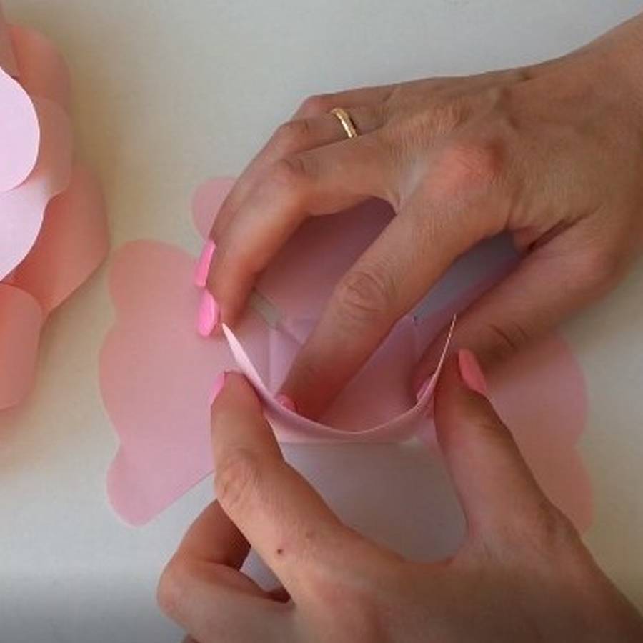 Начинаем сминать кружки слой за слоем, чтобы получились объемные цветы.