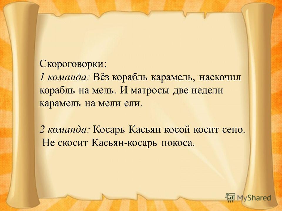 исполнители «скороговорили» на одном дыхании, поэтому скороговорки состоят из маленьких предложений, без