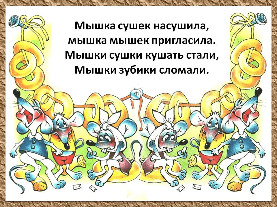 Скороговорки на произношение шипящих и свистящих согласных.