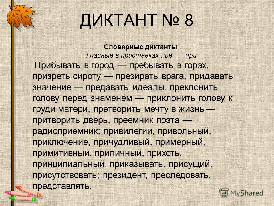 Словарный диктант по теме «Склонение имён прилагательных во множественном числе»