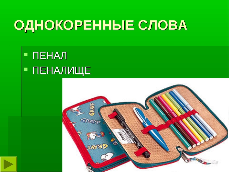 Основное слово «пенал»