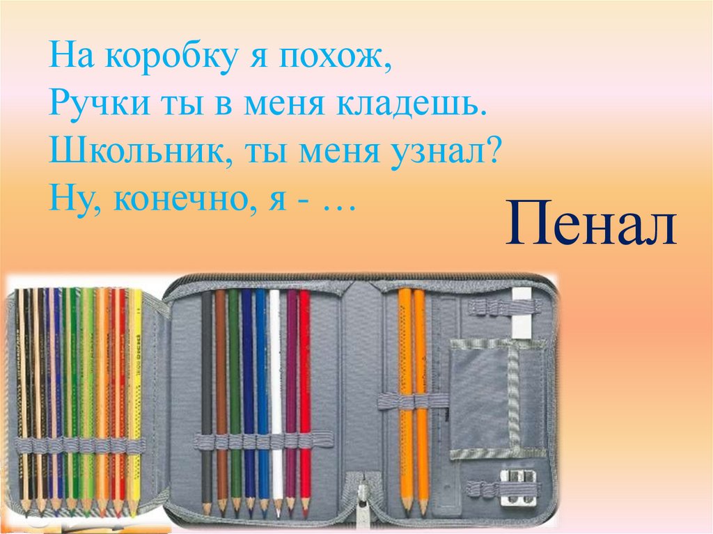 На коробку я похож,Ручки ты в меня кладешь. Школьник, ты меня узнал? Ну, конечно, я –