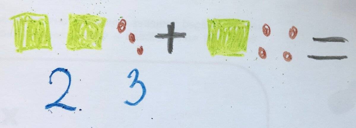 “Посмотри, что получилось – 2 и 3. Какое это число?” (Если малыш сразу не может сообразить – можно записать эти числа поближе друг к другу)