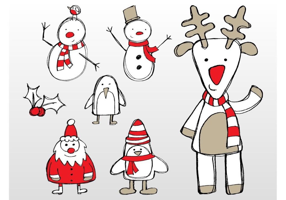 Совсем необязательно иметь большой талант, чтобы нарисовать вот такие милые рисунки. Они отлично подойдут для новогодних открыток или для оформления альбомов.