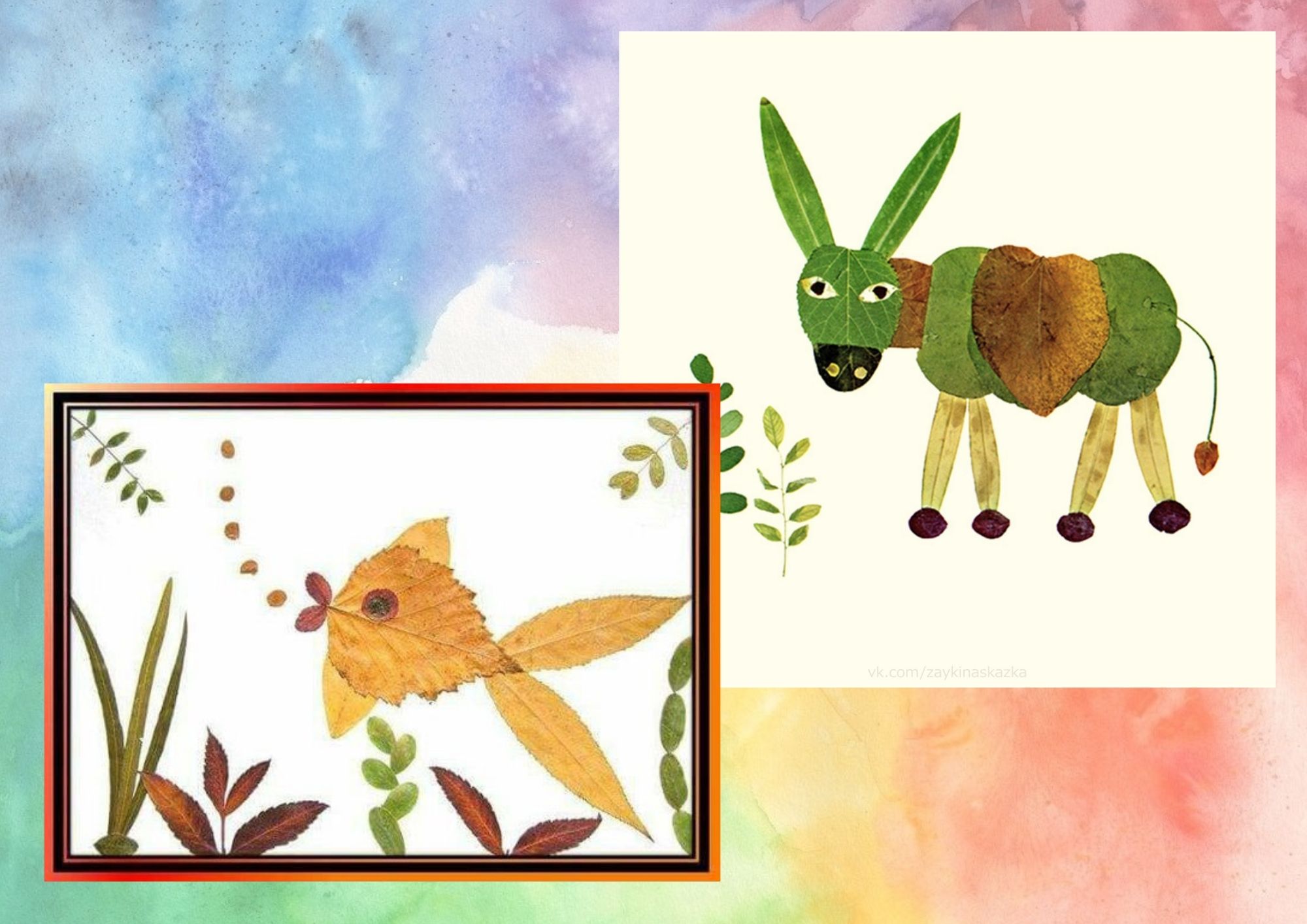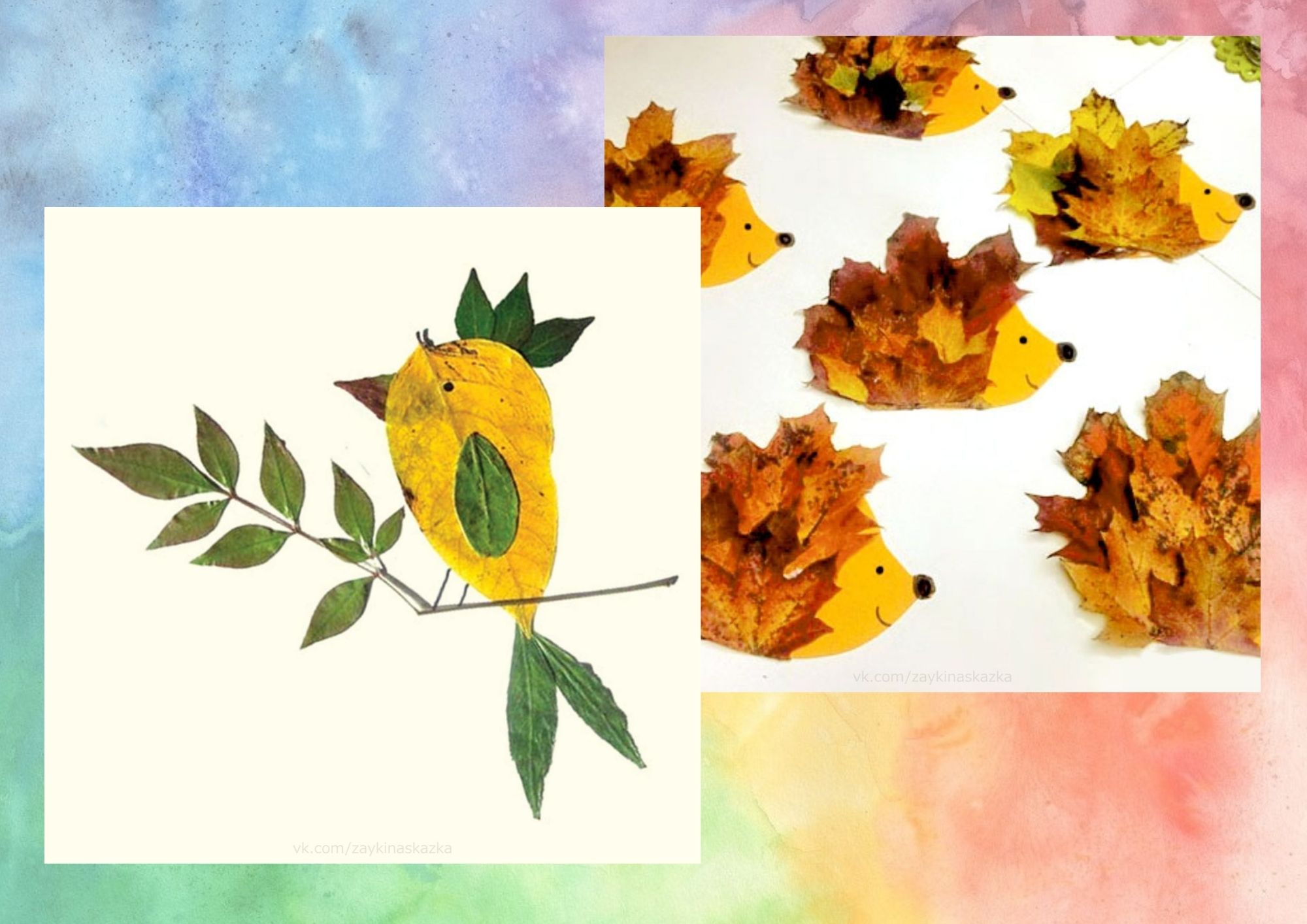 Красивая листва может стать отличным материалом для творческого занятия. Придумайте сюжет, и обыграйте его с ребенком с помощью природных материалов. Чаще всего для этого используется именно листва разного цвета, форм и размеров.