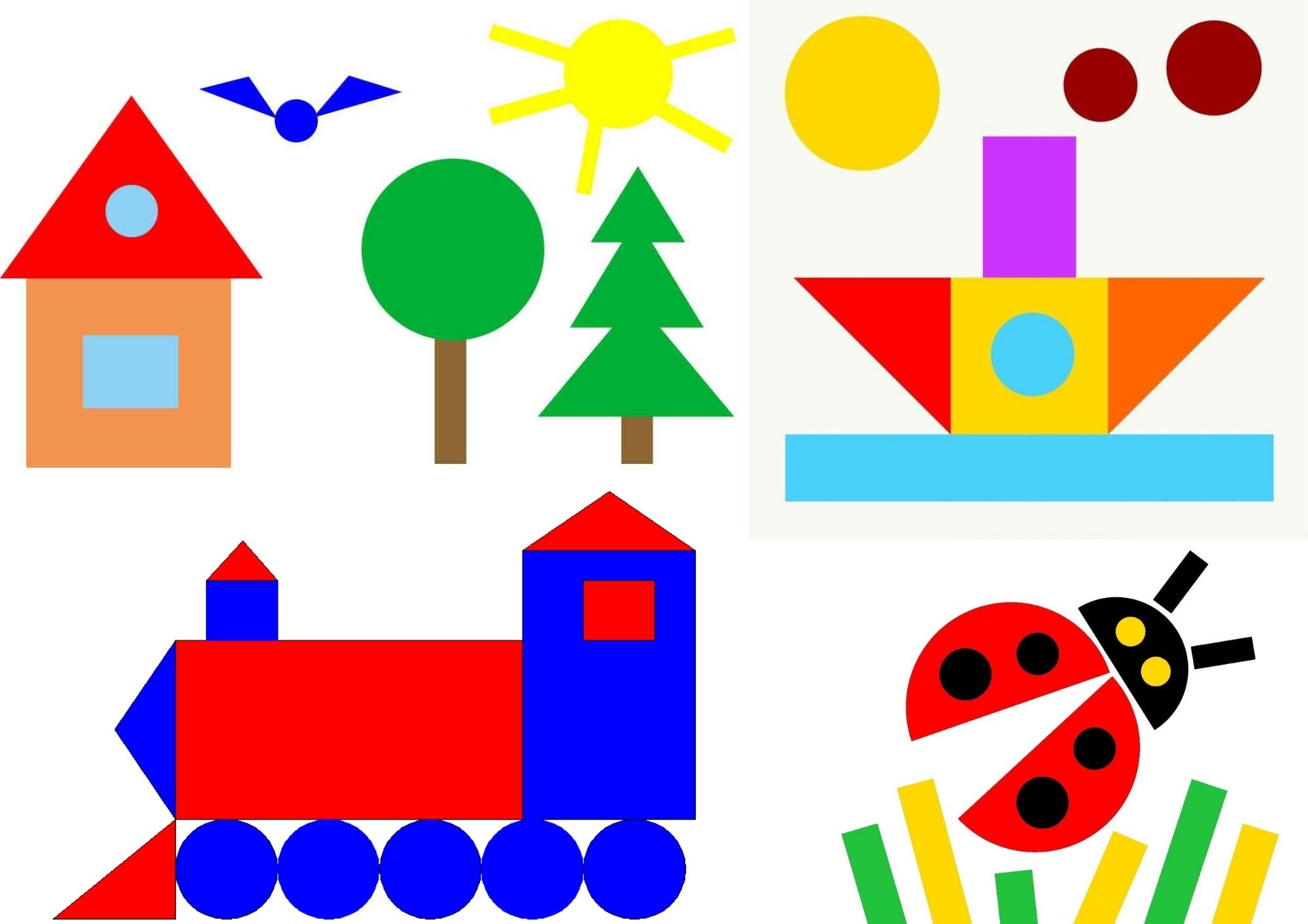 Следующий этап — это приклеивание определенных геометрических фигур. Здесь уже интересный для ребенка процесс приклеивания бумажек, совмещается пользой — развитие пространственного мышления, изучение и различие геометрических фигур.