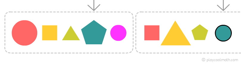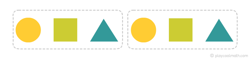 - Рассмотреть фигуры и разделить их, на повторяющиеся группы