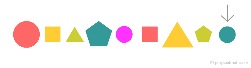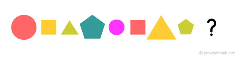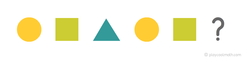 Предметы повторяются через каждые три ячейки. Зная закономерность, мы можем предположить, какие предметы будут дальше. За последним звеном будет треугольник, затем круг, далее квадрат.
