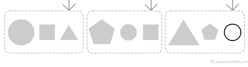 Видим, как чередуются звенья цепочки. Точно знаем, что по форме следующим будет круг, обозначим его как большой круг