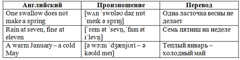 Пословицы и поговорки на английском языке очень редко переводятся дословно, поэтому их необходимо лишь запомнить в таком виде, в каком они даются в таблице. Надеяться на переводчик не следует, так как перевод окажется неверным.