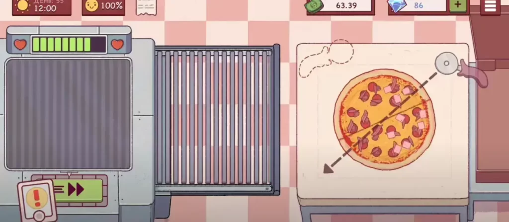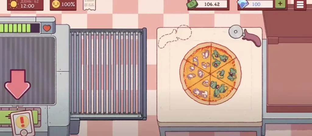 Делайте свои пиццы аккуратно, на каждую шестую часть пиццы нужно класть по три начинки и никак иначе! Лучше сразу купить «Разметка для Начинающих» за 100 золотых монеток! За неаккуратно сделанную пиццу покупатели могут вернуть свои деньги!Показать полностью.